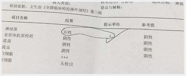 诊断标准:淋病是淋病奈瑟菌(简称淋球菌),根据淋球菌检测结果,显示阳性(+)为确诊感染淋病,阴性(?)为正常。